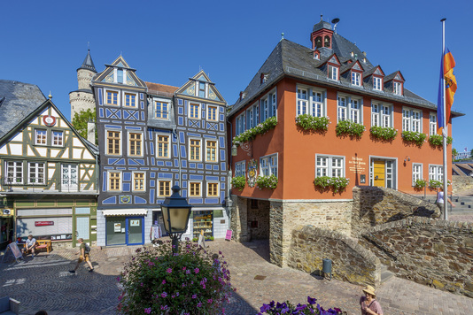 The half-timbered house, which, with its four floors, is particularly high for Idstein, was built in 1727 by the mayor of the town militia Johann Jacob Nicolay. From 1736 to 1745, the Idstein pharmacy was located in the left part of the house; later it was used as an office building and a private dwelling. Deficiencies in construction caused it to tilt.